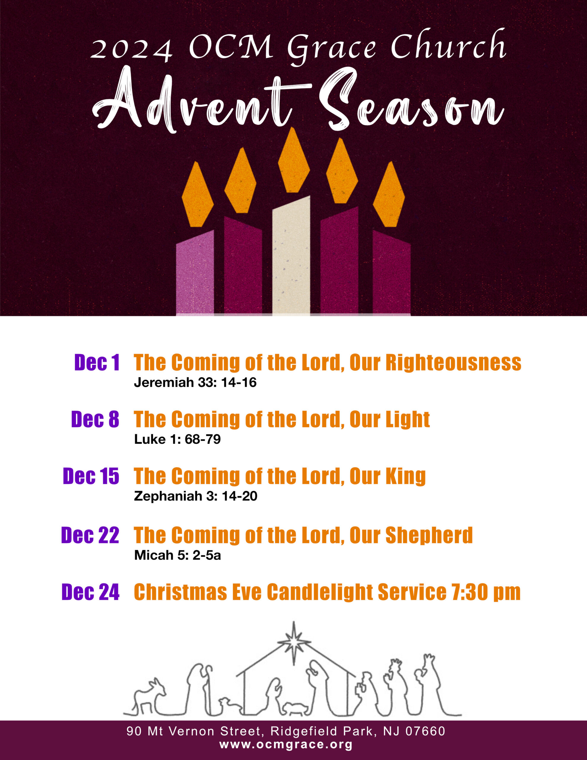 • Dec 24 – Christmas Eve Candlelight Service 7:00 PM